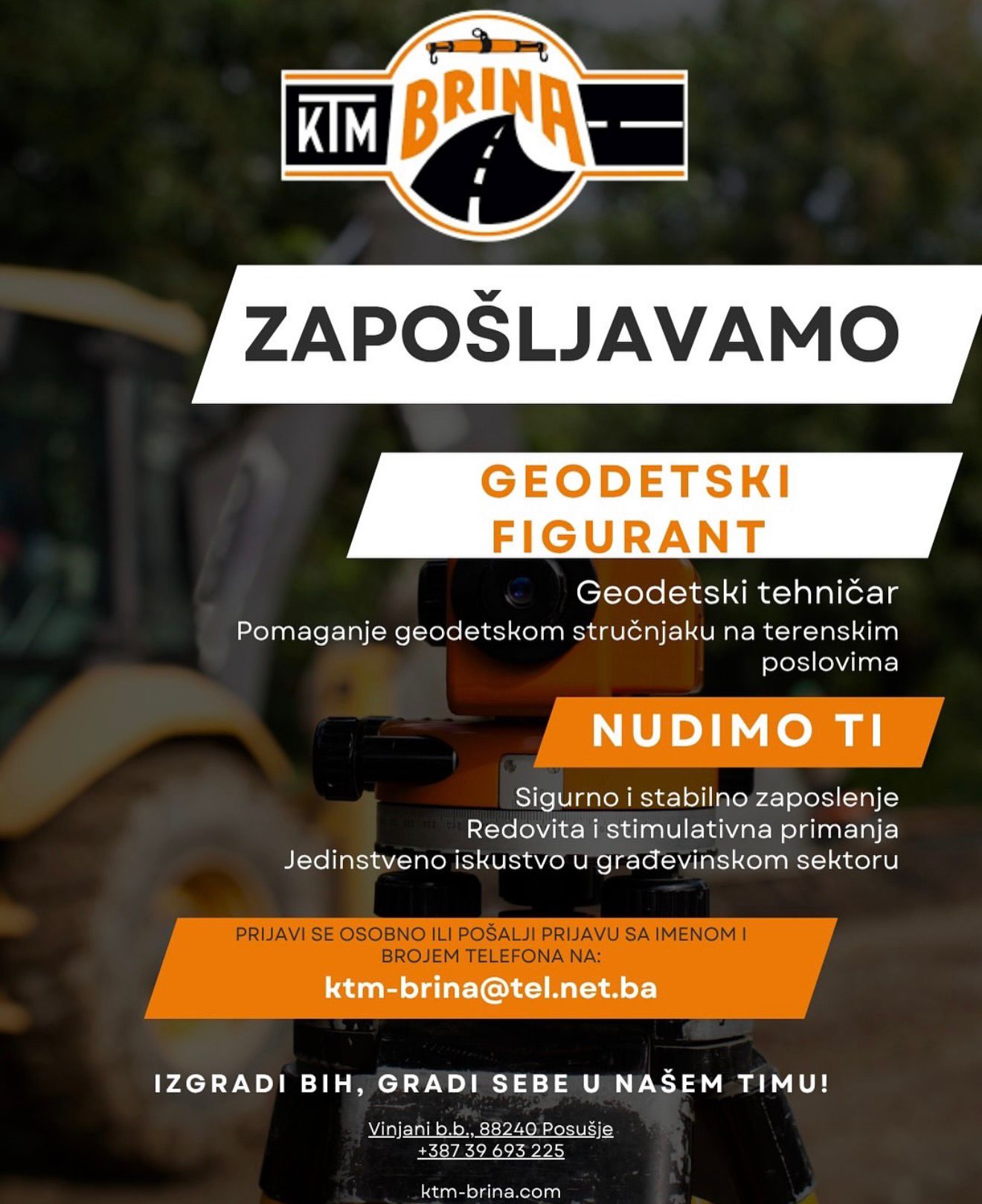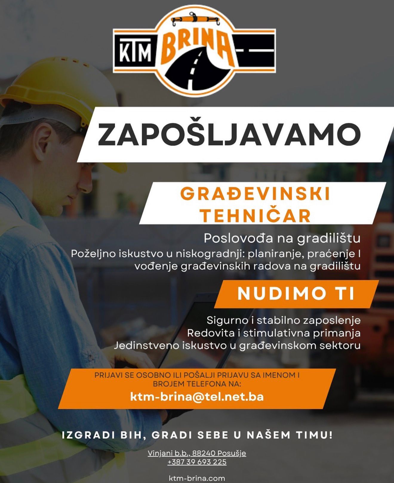 Kompanija KTM BRINA d.o.o. Posušje širi svoj tim i raspisuje konkurs za radno mjesto: