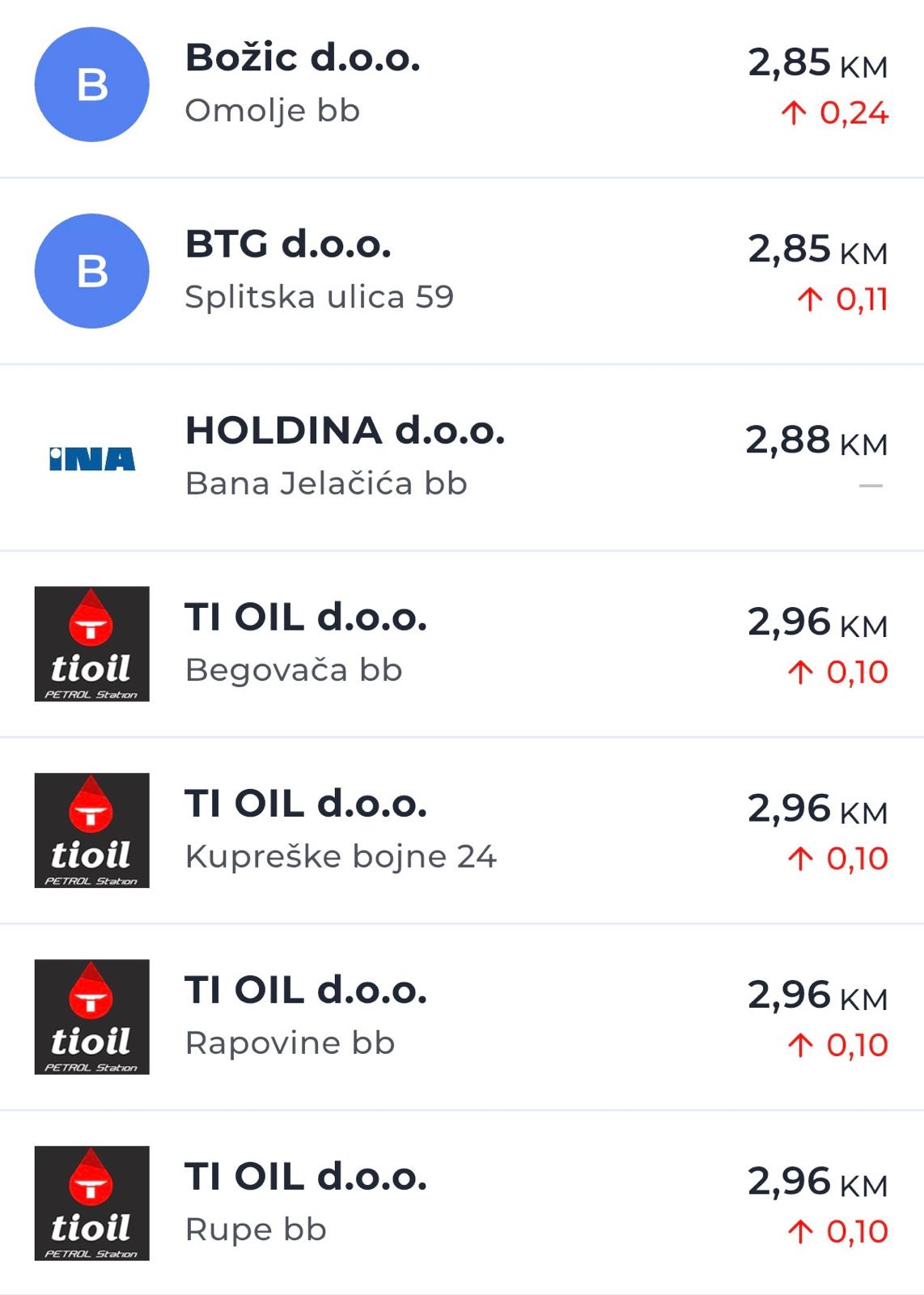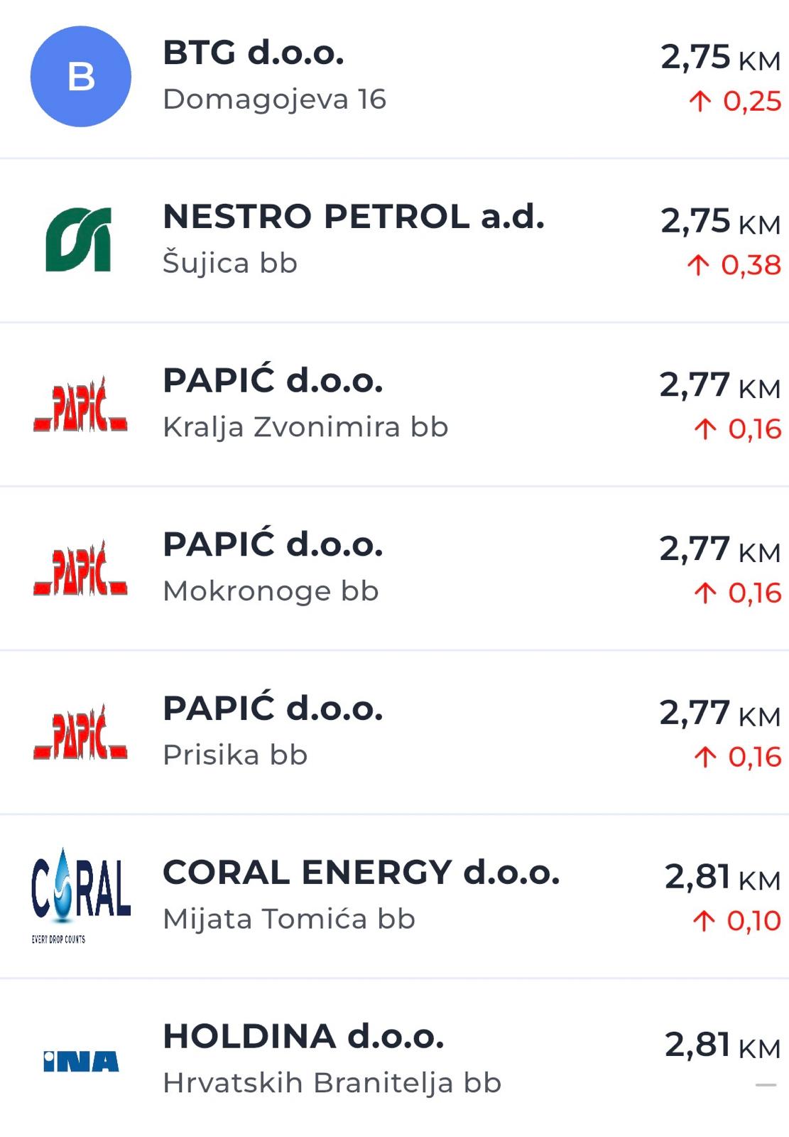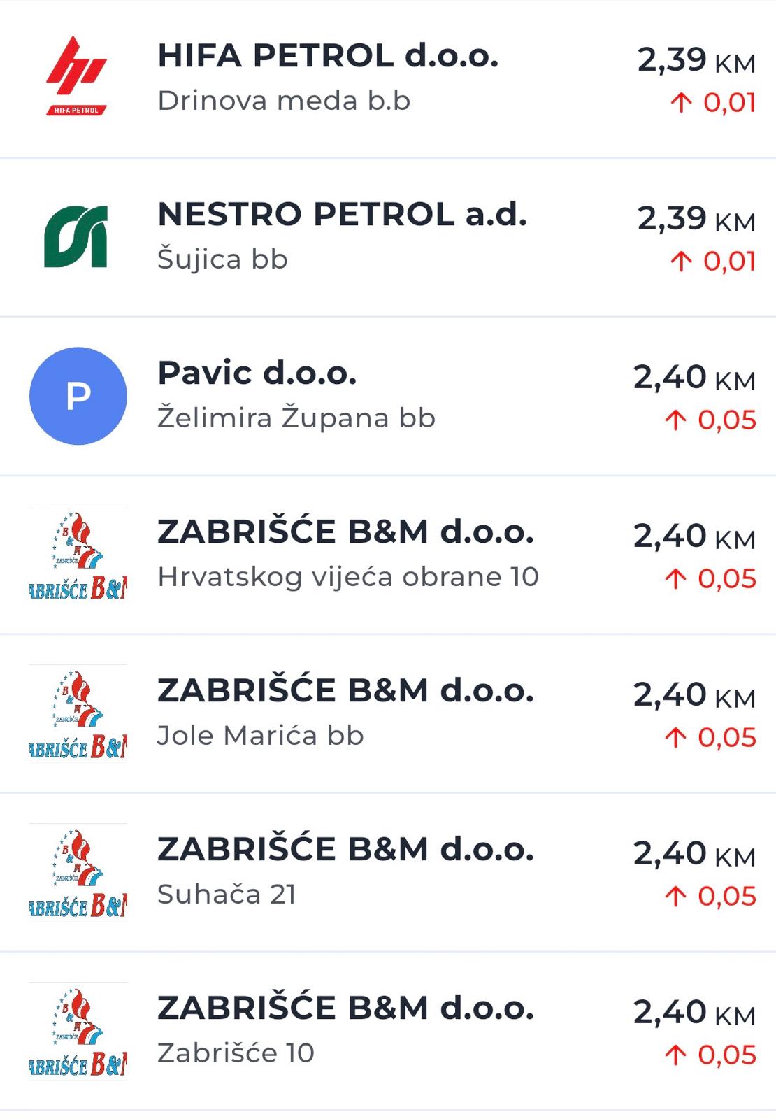 U odnosu na prethodne dane, na nekim pumpama cijene su porasle i za 30 do 54 feninga po litri, što predstavlja jedno od osjetnijih poskupljenja u posljednje vrijeme.