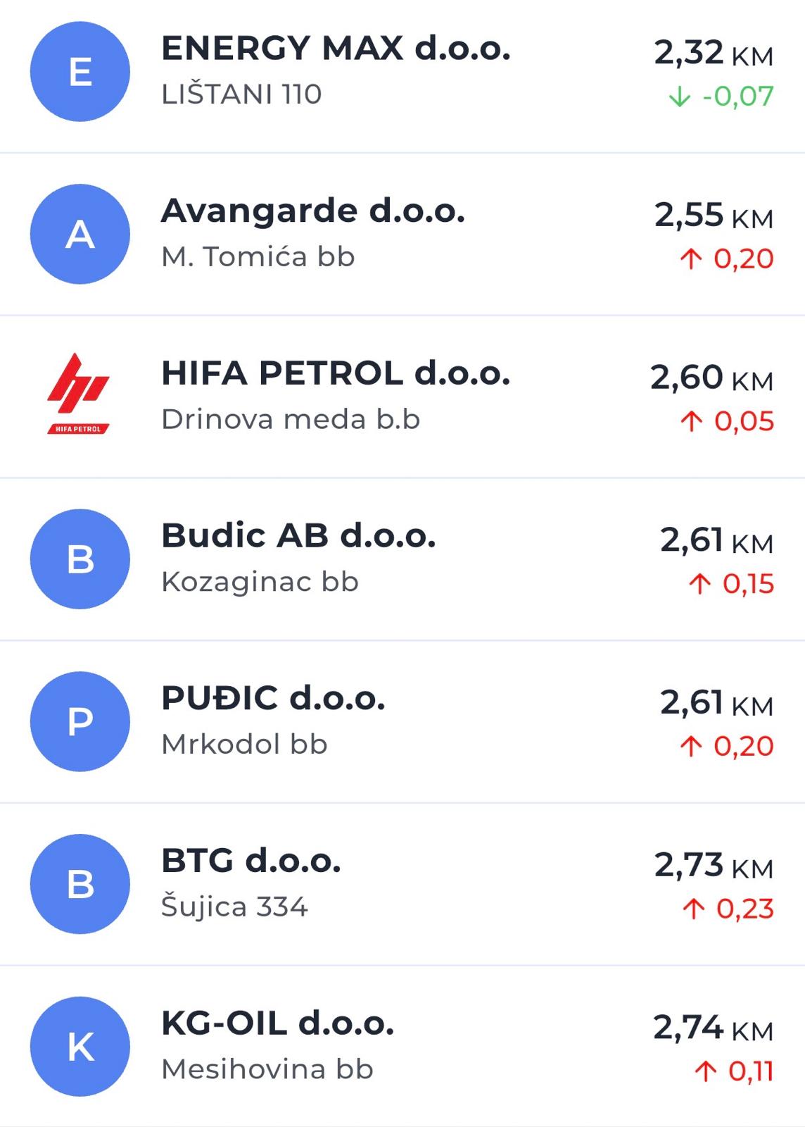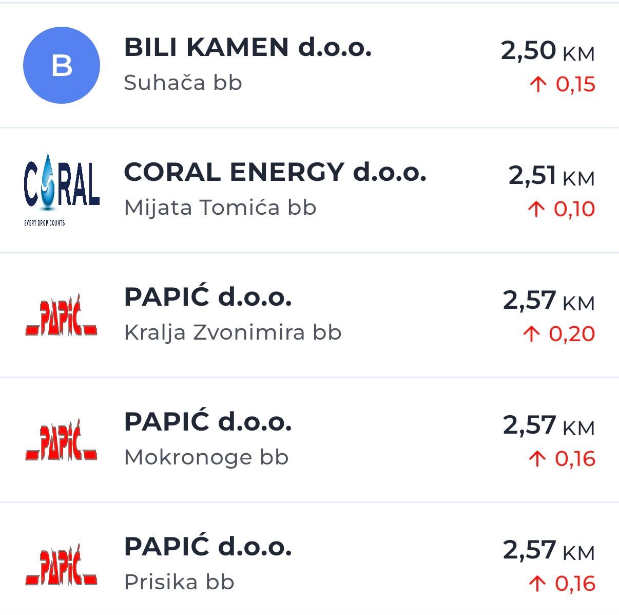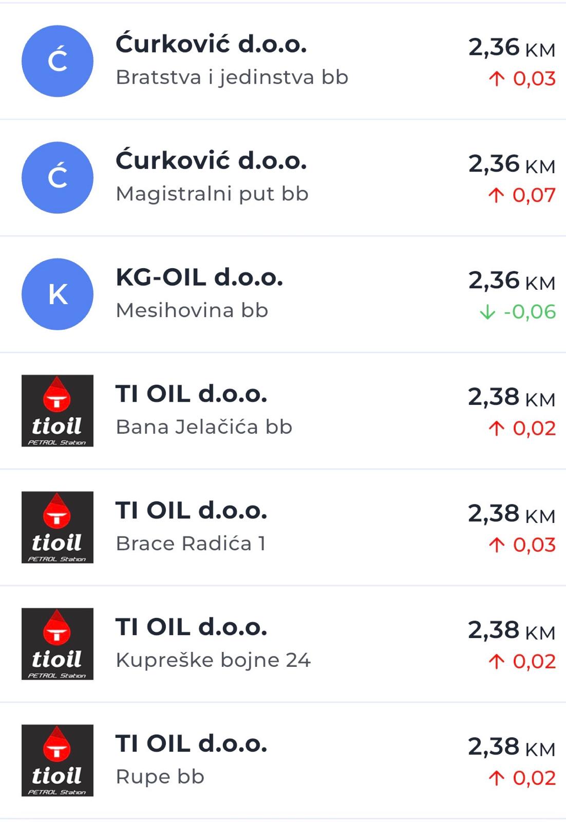 U odnosu na prethodne dane, na nekim pumpama cijene su porasle i za 30 do 54 feninga po litri, što predstavlja jedno od osjetnijih poskupljenja u posljednje vrijeme.