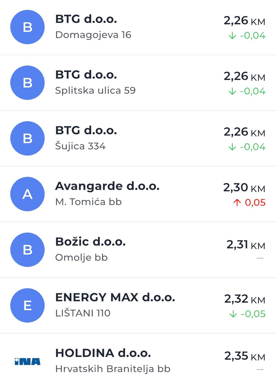 U odnosu na prethodno razdoblje, na pojedinim benzinskim postajama zabilježen je porast cijena od nekoliko feninga, dok je na pojedinim lokacijama zabilježeno i blago pojeftinjenje.