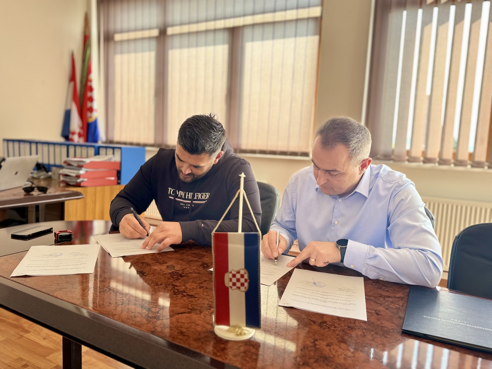 Ministar unutarnjih poslova Hercegbosanske županije Mario Lovrić potpisao je danas ugovor s direktorom poduzeća GM Sermen d.o.o. , Matom Semrenom, čime službeno započinje realizacija projekta izgradnje nove zgrade Policijske postaje Glamoč.